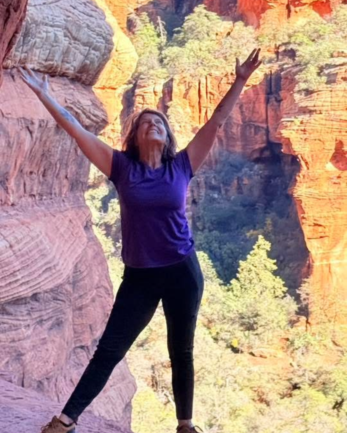 Liz Aitken lives in Sedona, a place that played a profound role in her own healing and ultimately reshaped the direction of her life. Drawn to the land for its stillness and restorative energy, Liz found herself reconnecting to her body, her intuition, and a slower, more intentional way of living. That experience now guides the work she offers others through Reiki, yoga with meditation, and Shamanic Reiki drumming—practices rooted in presence, rhythm, and deep listening.